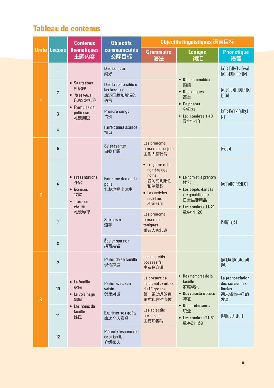 希望通过使用本教材,学生们全面提高语言运用能力,发展法语学科的核心素养,成为具有中国情怀、国际视野和跨文化沟通能力的社会主义建设者和接班人。