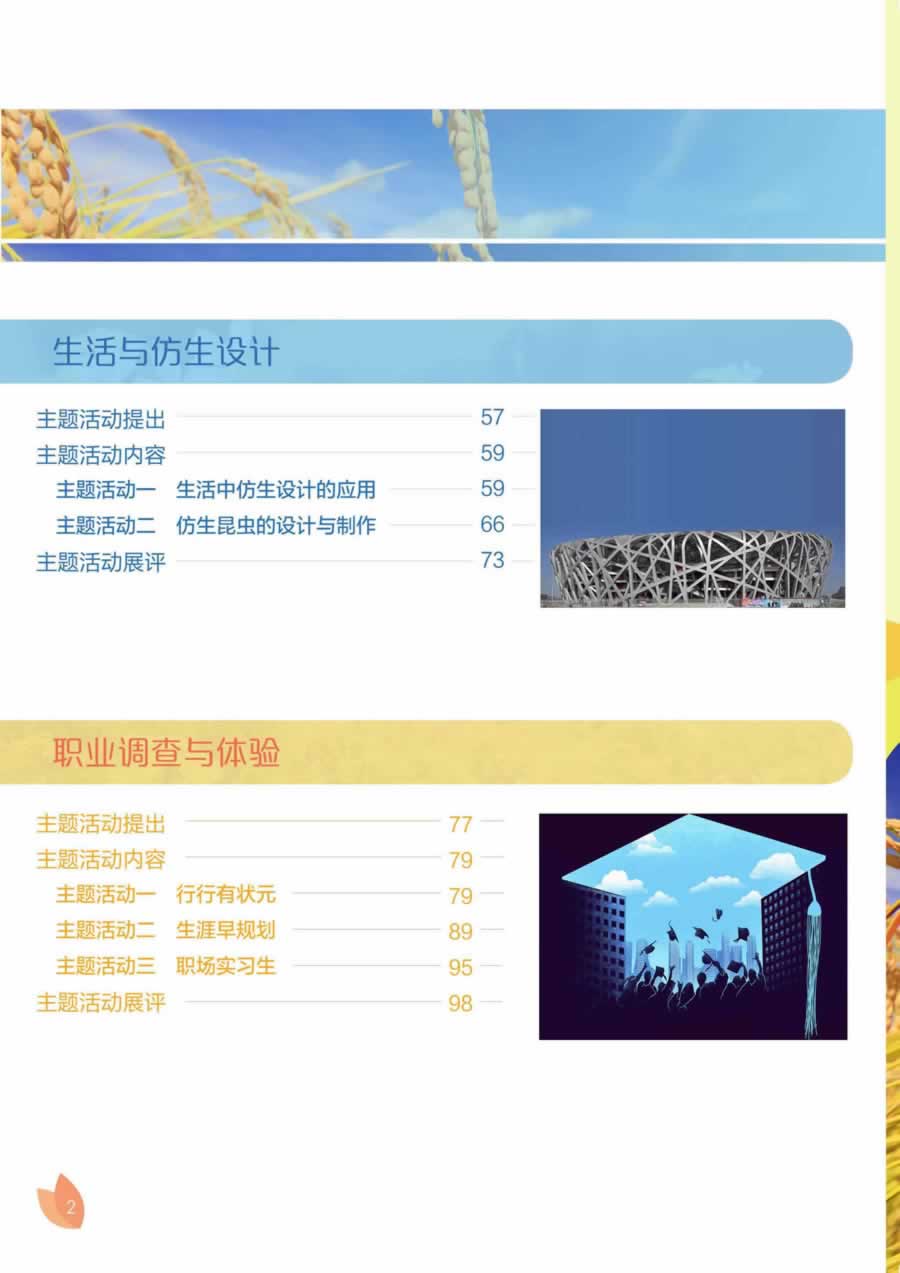 这套学习材料对应考察探究、社会服务、设计制作、职业体验等四大活动领域及四种活动方式,在每一册中都精心编排了四个主题活动,并按照同学们的学科知识背景、生活经验,进行跨学科整合,回归生活世界,形成了一个个螺旋上升的序列。每个主题侧重对应一种主要的活动方式,但又同时涵盖了综合实践活动课程考察、探究、服务、体验、设计、制作、交流、展示、总结、反思等主要的学习方式,集中指向同学们正确的价值体认、积极的责任担当、有效的问题解决、独特的创意物化的意识和能力的培养,实践育人、综合育人。每个主题又通过头脑风暴,分别设计了三个主题活动,同学们可通过问卷调查、实验探究、设计制作、观察访谈等丰富多样的活动方式,经历从活动准备到活动实施再到成果展评的活动过程。