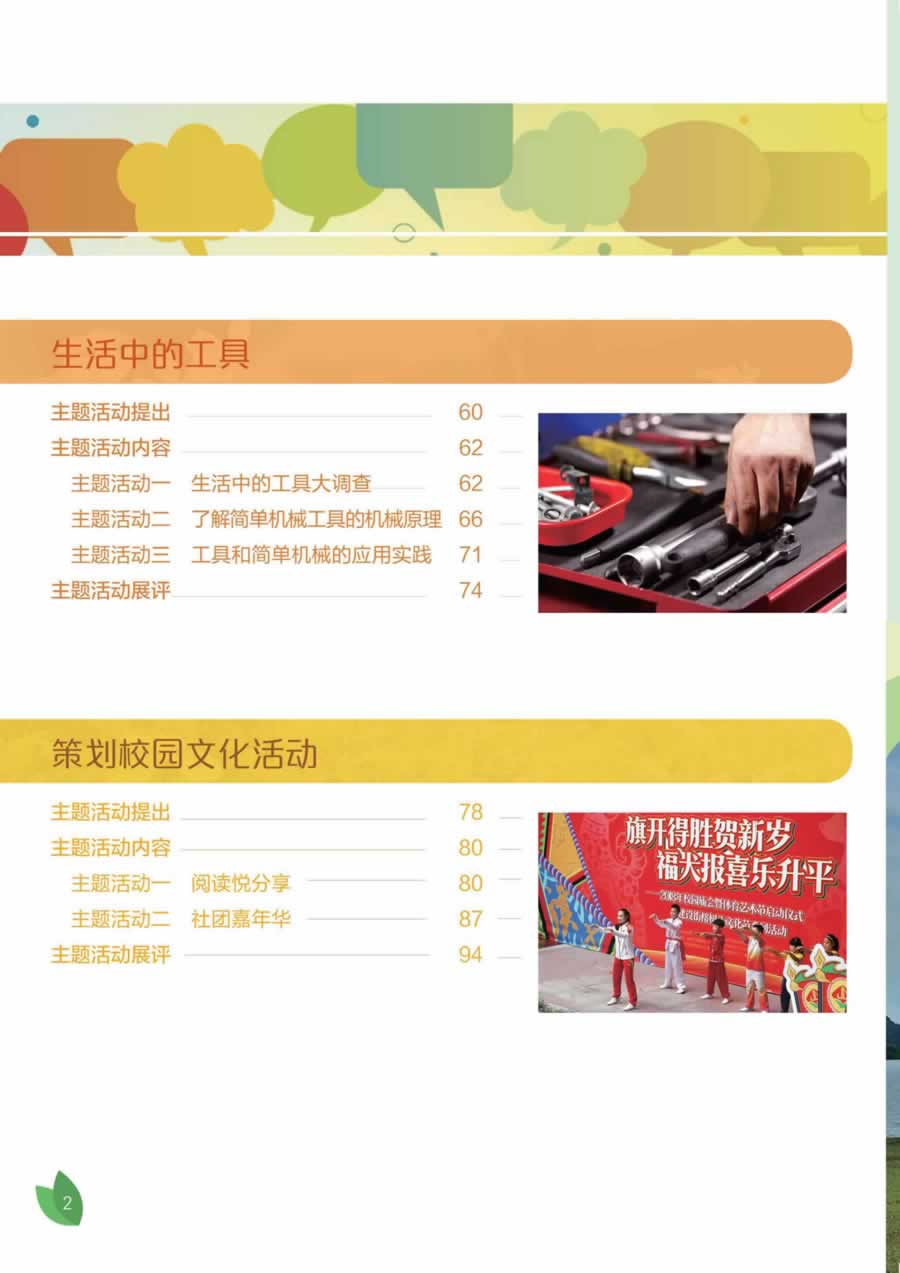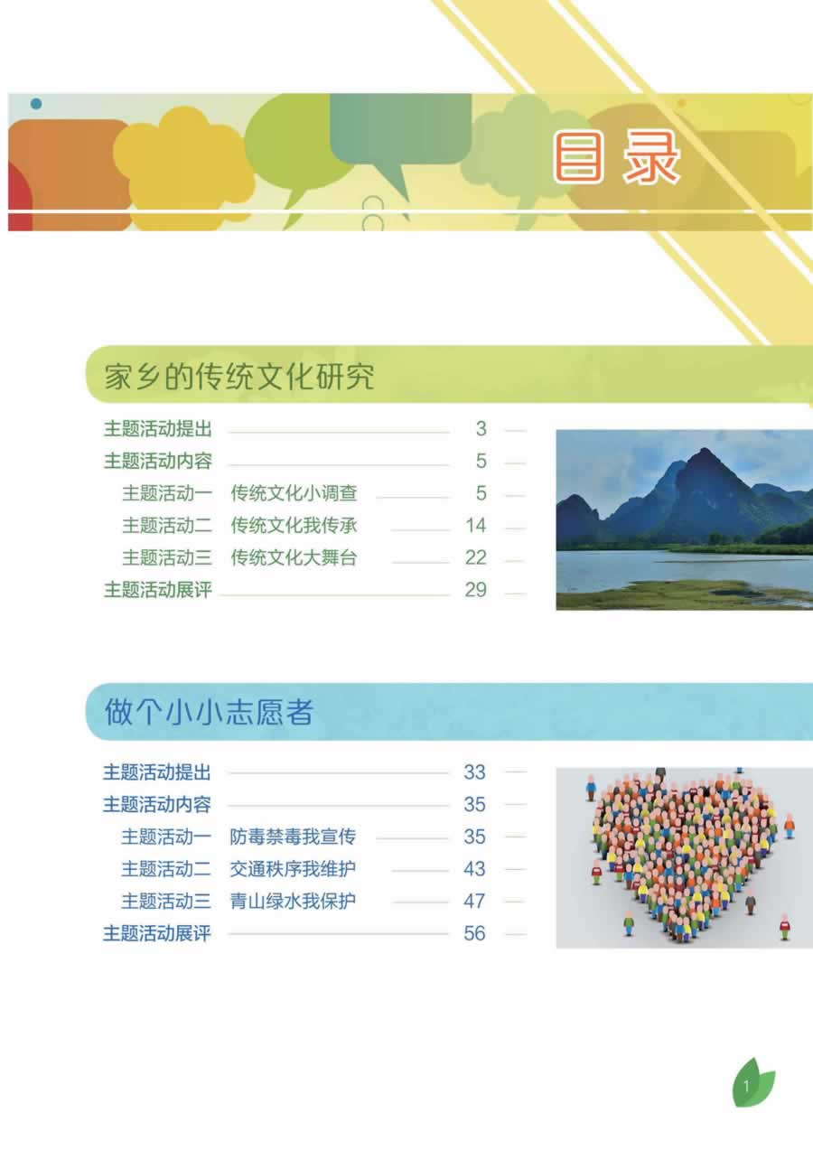 同学们,你们手上拿到的这本让人耳目一新的小册子,既不是传统意义上的学科教材,也不是可以照本宣科的综合实践活动课本。它是根据综合实践活动课程理念、目标和特征而编写的一本学习材料,或者说是一系列主题活动素材。