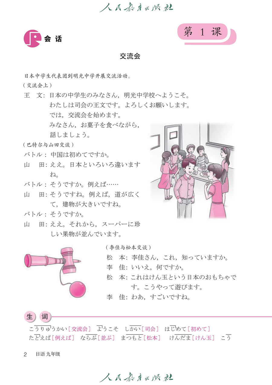 初中义务教育教科书·日语九年级全一册,人民教育出版社编著,主编:唐磊,翟东娜。