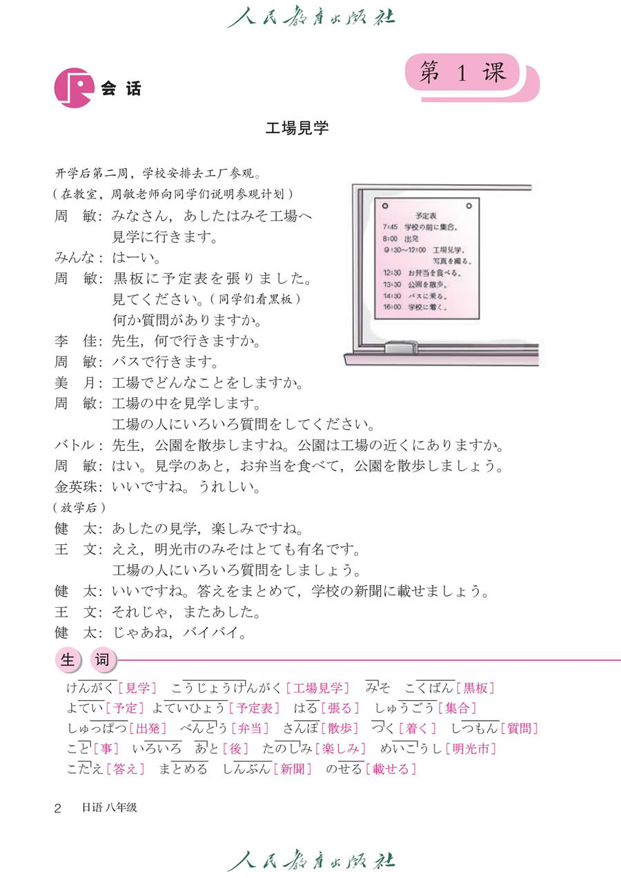 初中义务教育教科书·日语八年级全一册,人民教育出版社编著,主编:唐磊,翟东娜。