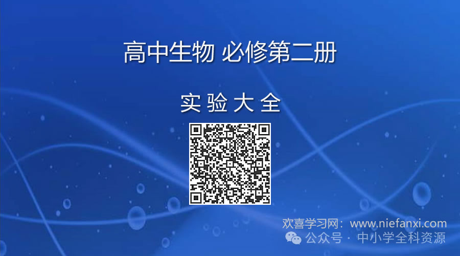 高中生物必修第二册实验大全,各地区版本教材实验内容步骤相通,可通用。点击链接或扫描上方二维码订阅在线观看,可打包下载。获取更多学习资源,请关注公众号:中小学全科资源