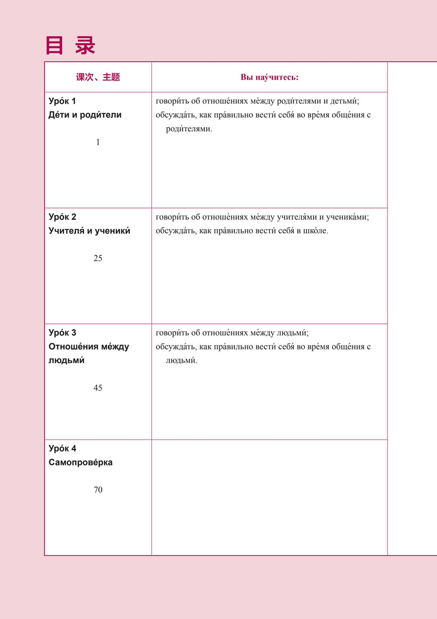 全书共有四个单元:三个主题单元和Самопрове́рка。